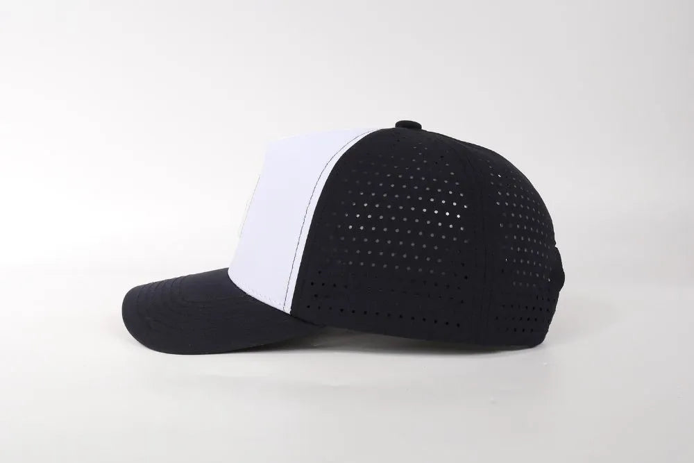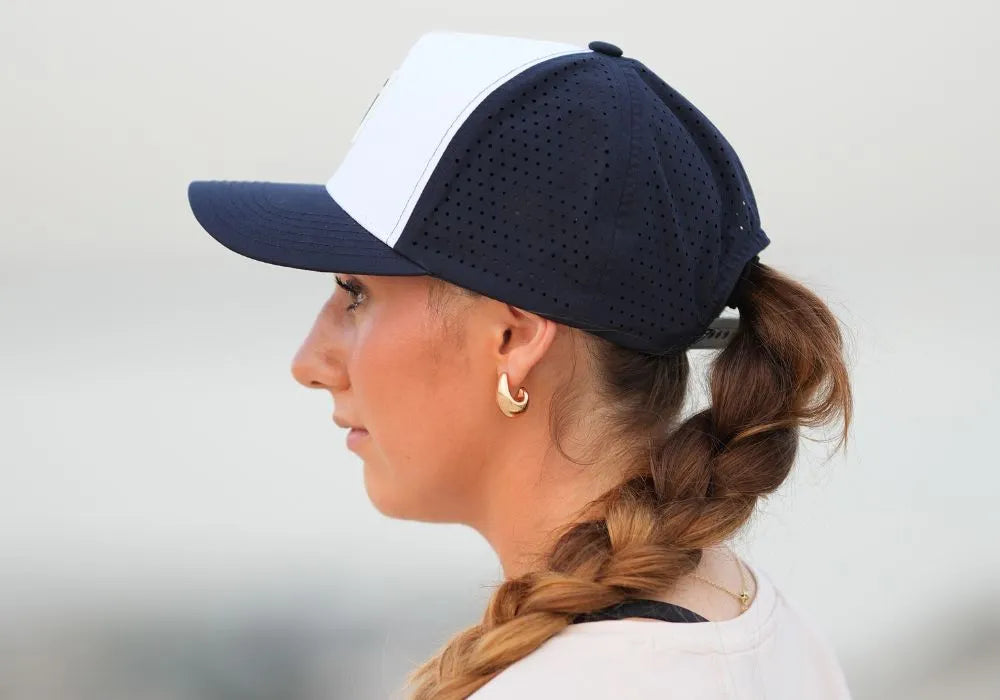 The Coastal Classic captures the essence of seaside living in every thread. Born from morning runs along the shoreline and lazy afternoons watching waves, this hat embodies the relaxed confidence of coastal culture. The crisp white front panels reflect the sun like sea foam, while the deep navy accents ground the design like ocean depths. It’s the hat that transitions seamlessly from sunrise beach runs to sunset boardwalk strolls, from yacht clubs to beach volleyball courts. More than just a color combination, it’s a lifestyle statement that says you’ve found your rhythm where the land meets the sea. The Coastal Classic doesn’t just complement your beach days – it elevates them.
