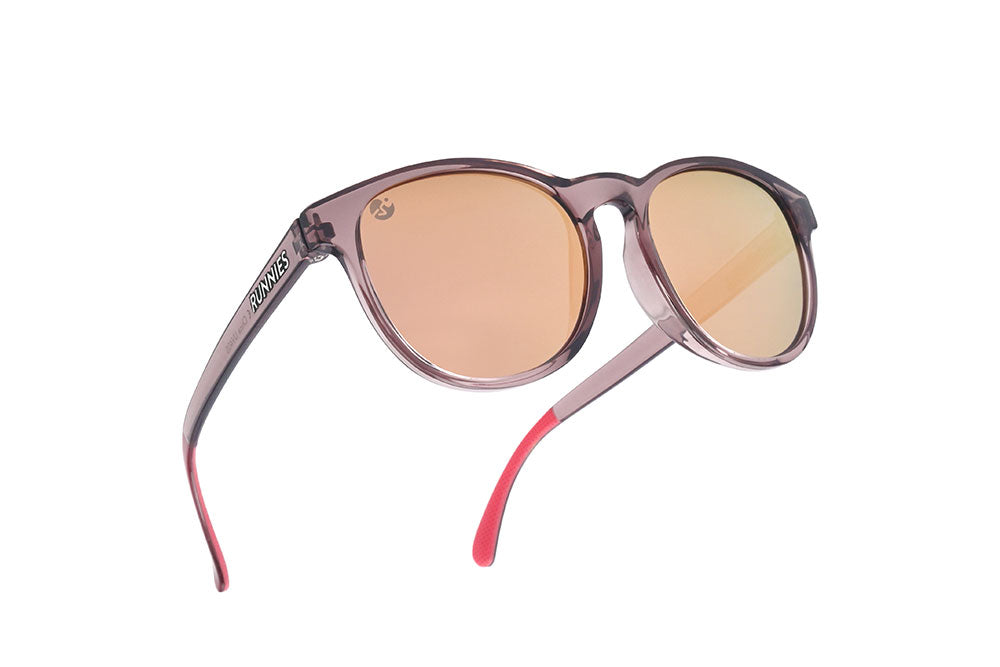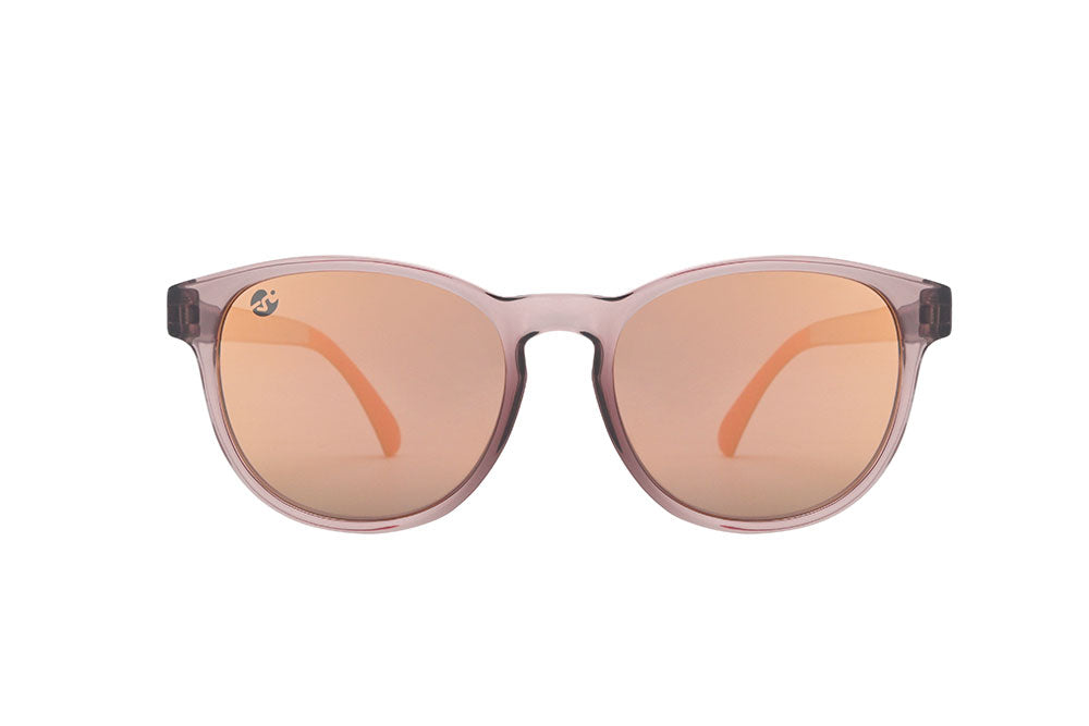Beachside elegance personified. Translucent pink frames with rose gold mirror lenses