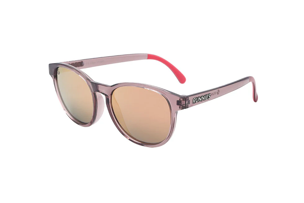 Beachside elegance personified. Translucent pink frames with rose gold mirror lenses