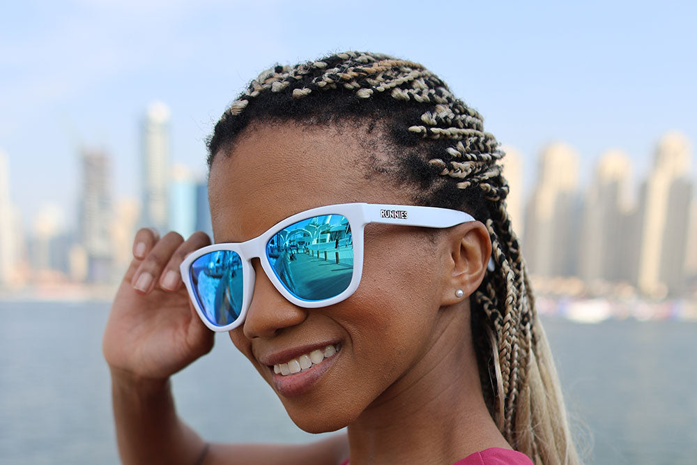 Dive deep for pearls, surface with jewels. Juwls of the Gulf celebrates the precious treasures hidden beneath Arabian waters – where pearl divers once sought fortune and found legacy. Pure white frames embrace sapphire blue mirror lenses that sparkle like precious gems. Built for modern treasure hunters who know true luxury ignites from within. When you wear your worth, let it shine like the jewels of the Gulf.