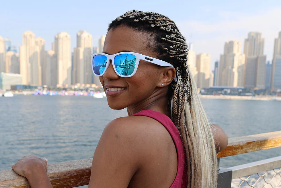 Dive deep for pearls, surface with jewels. Juwls of the Gulf celebrates the precious treasures hidden beneath Arabian waters – where pearl divers once sought fortune and found legacy. Pure white frames embrace sapphire blue mirror lenses that sparkle like precious gems. Built for modern treasure hunters who know true luxury ignites from within. When you wear your worth, let it shine like the jewels of the Gulf.