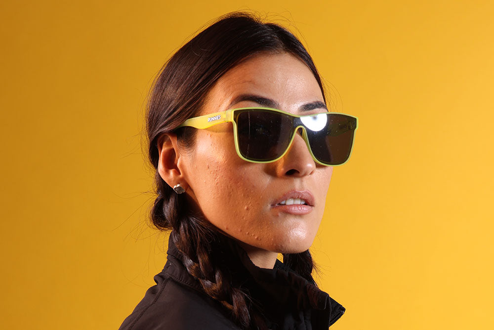 Light up the streets. Electric yellow frames with silver mirror lenses