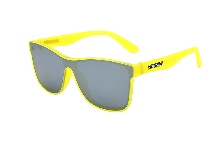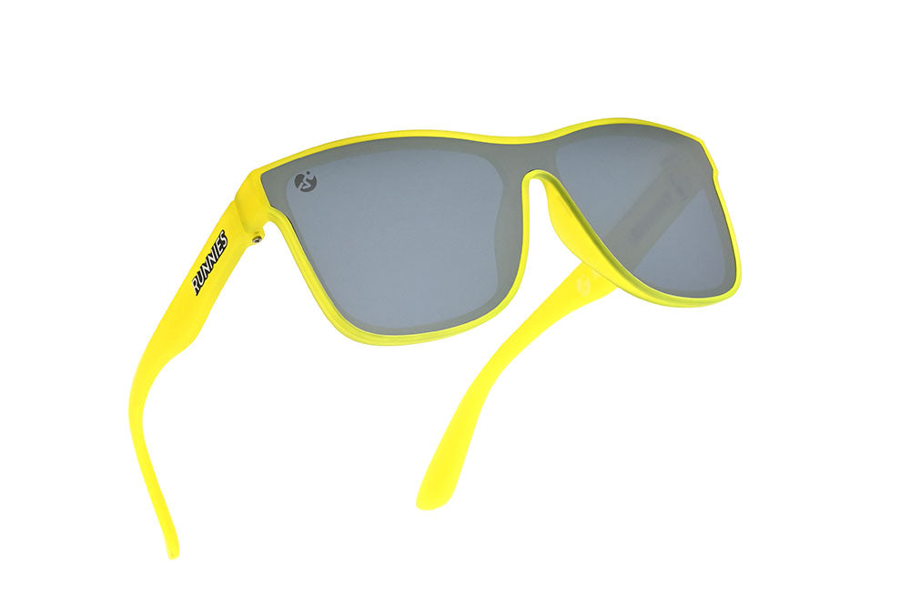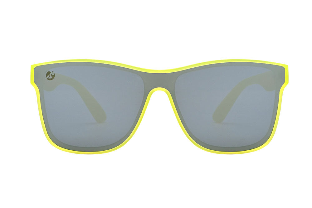 Light up the streets. Electric yellow frames with silver mirror lenses
